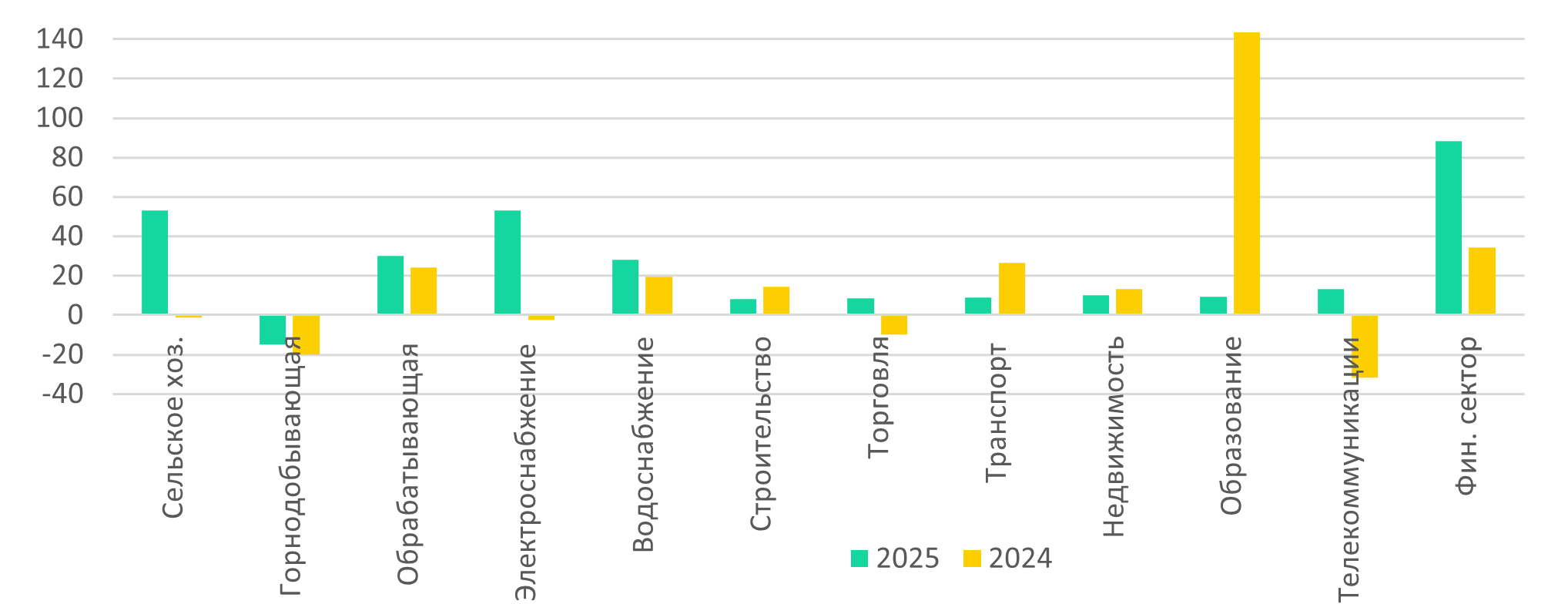 Ключевым драйвером инвестиционной динамики в 2025 году выступили отрасли жизнеобеспечивающей инфраструктуры: на проекты в сфере электро- и водоснабжения пришлось треть всего прироста капиталовложений за январь–декабрь 2025 года. Свыше четверти бюджетных инвестиций было направлено на обновление инженерной инфраструктуры в данных секторах. Положительную динамику инвестиций показали транспорт, недвижимость, обрабатывающая промышленность, тогда как в горнодобывающем секторе сохраняется спад.