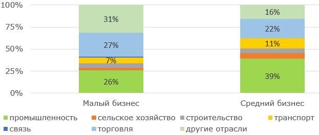 Средний бизнес имеет более высокий потенциал роста по сравнению с малым за счёт большего масштаба, что позволяет эффективнее использовать ресурсы, внедрять инновации и масштабировать производство. Большая часть продукции средних предприятий представлена в обрабатывающей промышленности, одной из наиболее значимых отраслей экономики с точки зрения технологического развития, модернизации и качественной занятости. При этом доля средних предприятий в ВВП на протяжении последних лет остаётся незначительной в силу трудностей с финансированием, административных нагрузок, недостатка стимулов для масштабирования. Это ограничивает потенциал качественного роста и создания высокопроизводительных рабочих мест.