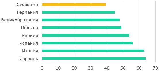 В 2024 году наблюдалось ухудшение бизнес-климата: Казахстан занял 32-е место среди стран GEM по условиям ведения бизнеса, опустившись на 11 позиций по сравнению с предыдущим отчетом 2021 года (21-е место). Предприниматели отмечают ухудшение факторов бизнес-среды: в 2024 году общая оценка качества предпринимательской среды Казахстана составила 4,5 (меньше среднего уровня) и оказалась ниже показателя 2021 года - 4,8. При этом наибольшее падение приходится на государственную политику и финансирование.