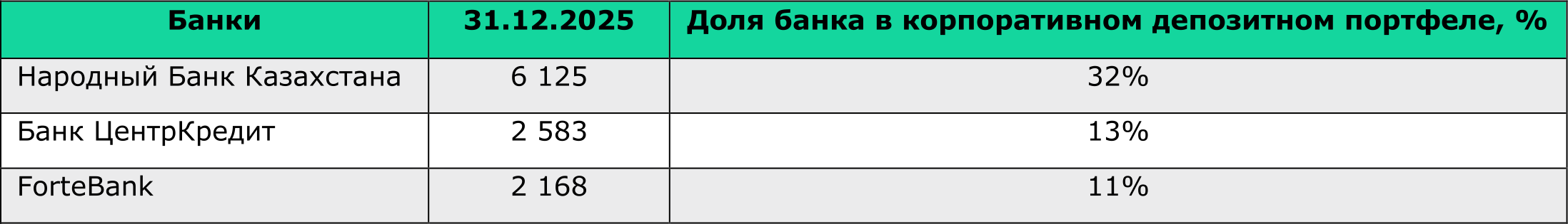 Таблица 5. Банки-лидеры по корпоративным депозитам на 31.12.2025, Т млрд
