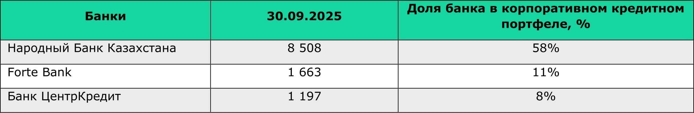 Таблица 3. Банки-лидеры корпоративного кредитования 9M2025, Т млрд