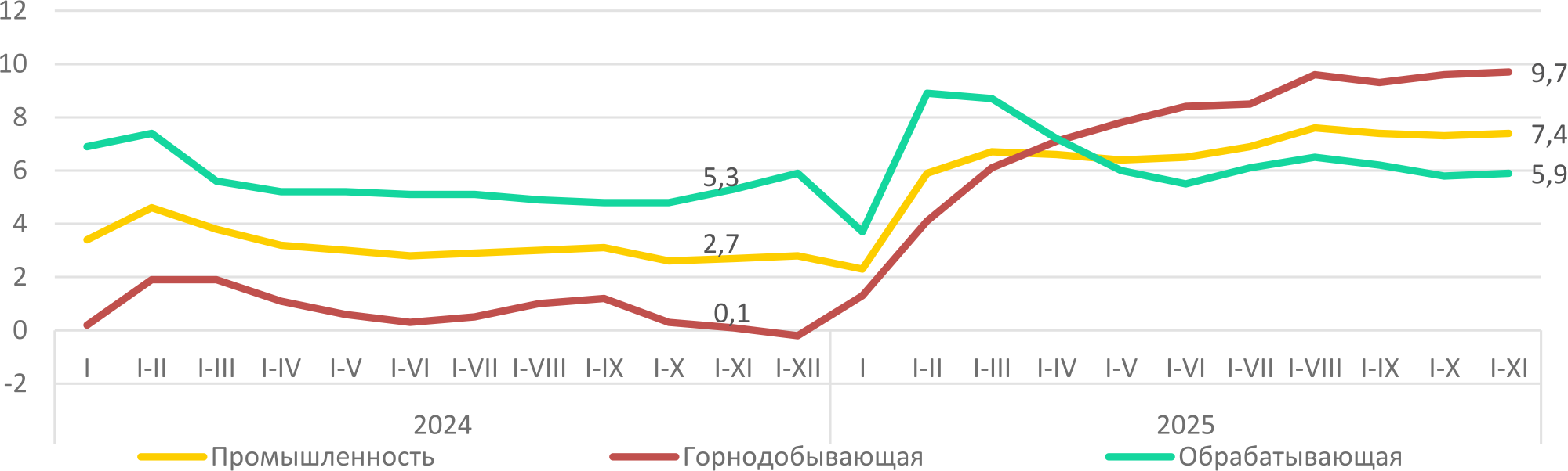 Промышленность в январе-ноябре 2025 года: драйвер роста – горнодобывающий сектор