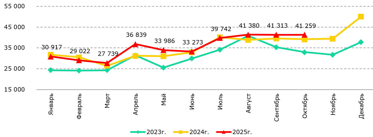 Рис. 2. Динамика количества сделок купли-продажи за 2023-2025 годы