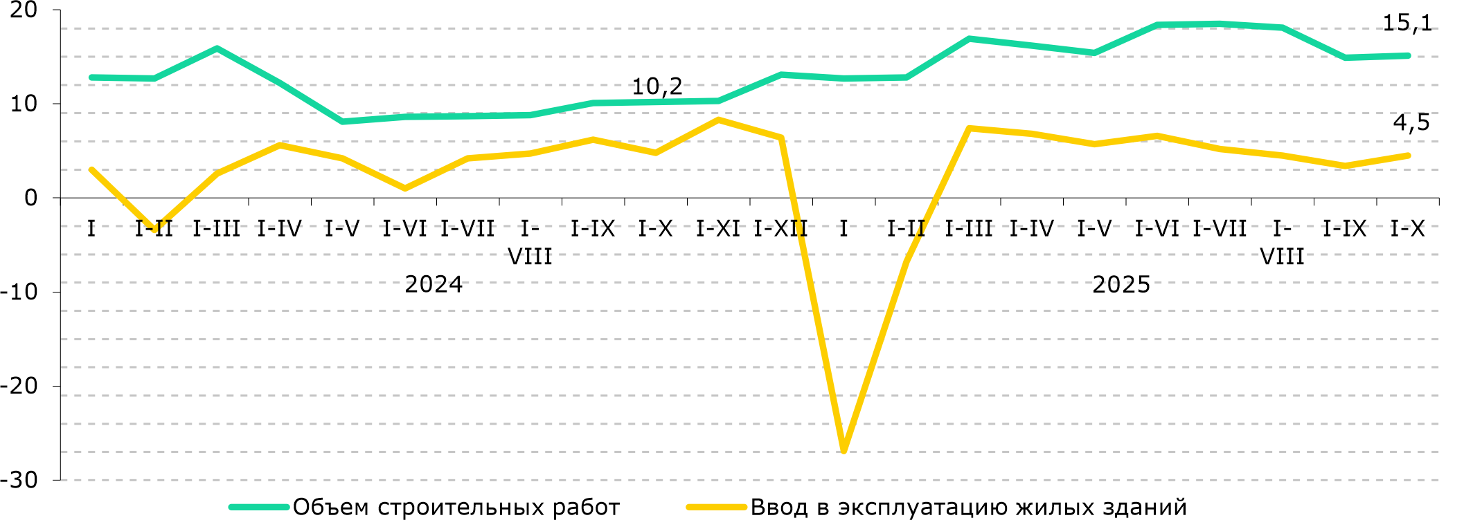 Рис. 1. Динамика строительных работ, % г/г