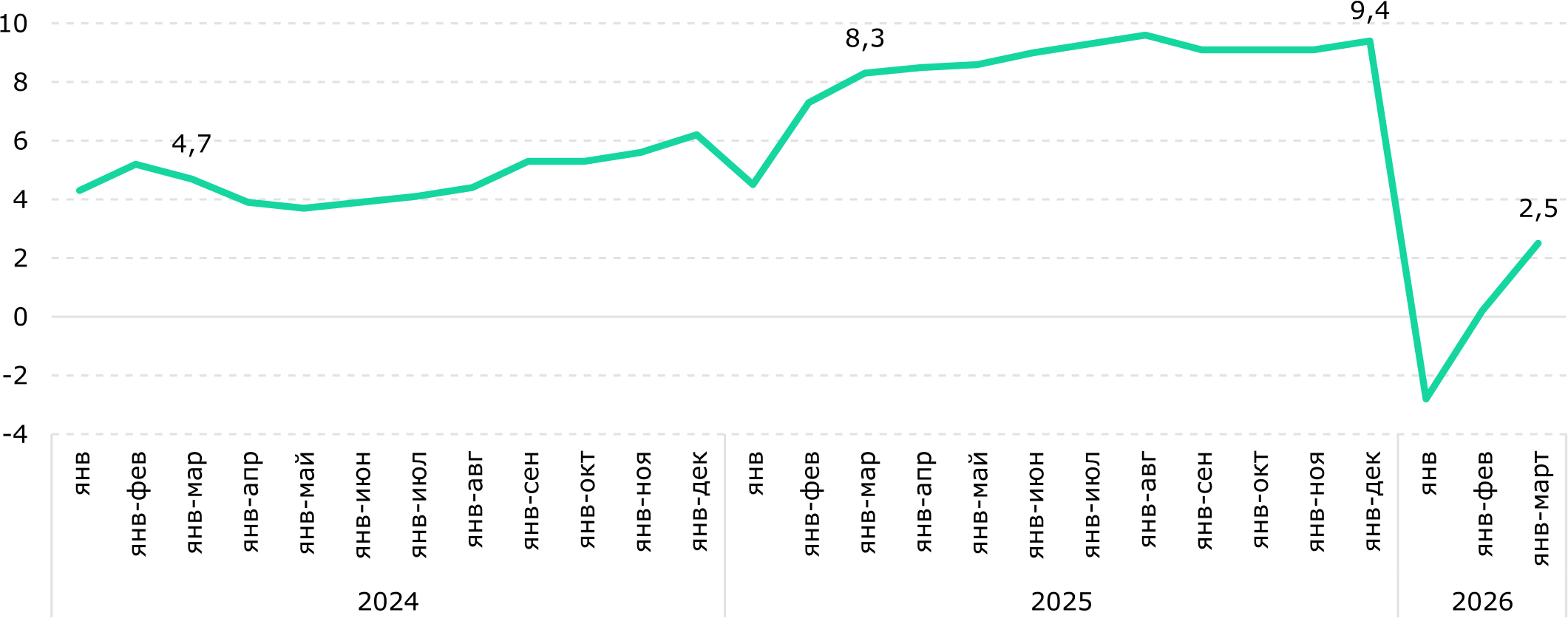 Рис. 1. Динамика КЭИ, % г/г