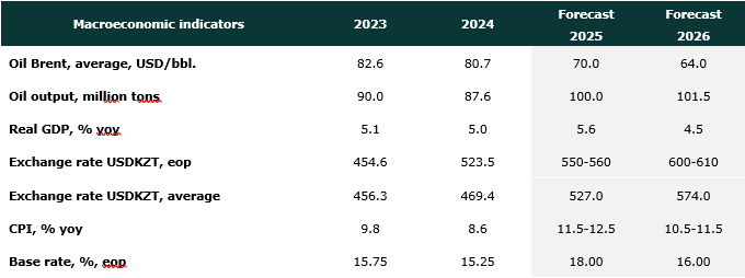 We maintain our GDP growth forecast for 2025 at 5.6%, expecting a gradual slowdown toward year-end due to the weakening of fiscal stimulus and the high base effect from 2024. In 2026, we forecast economic growth to slow further to 4.5%, reflecting the expected decline in oil prices, slower oil production growth, reduced National Fund transfers, higher tax rates, weaker household income dynamics, slower consumer lending, persistent inflation, and the completion of several large public infrastructure projects. Overall, Kazakhstan’s economy is entering a cooling phase following a period of strong growth driven by fiscal spending and oil-sector expansion.
