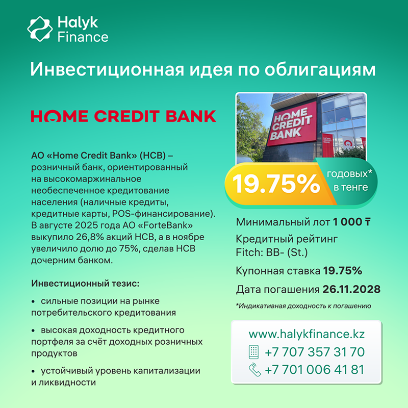 АО «Home Credit Bank» (HCB) – розничный банк, ориентированный на высокомаржинальное необеспеченное кредитование населения (наличные кредиты, кредитные карты, POS-финансирование). В августе 2025 года АО «ForteBank» выкупило 26,8% акций HCB, а в ноябре увеличило долю до 75%, сделав HCB дочерним банком.