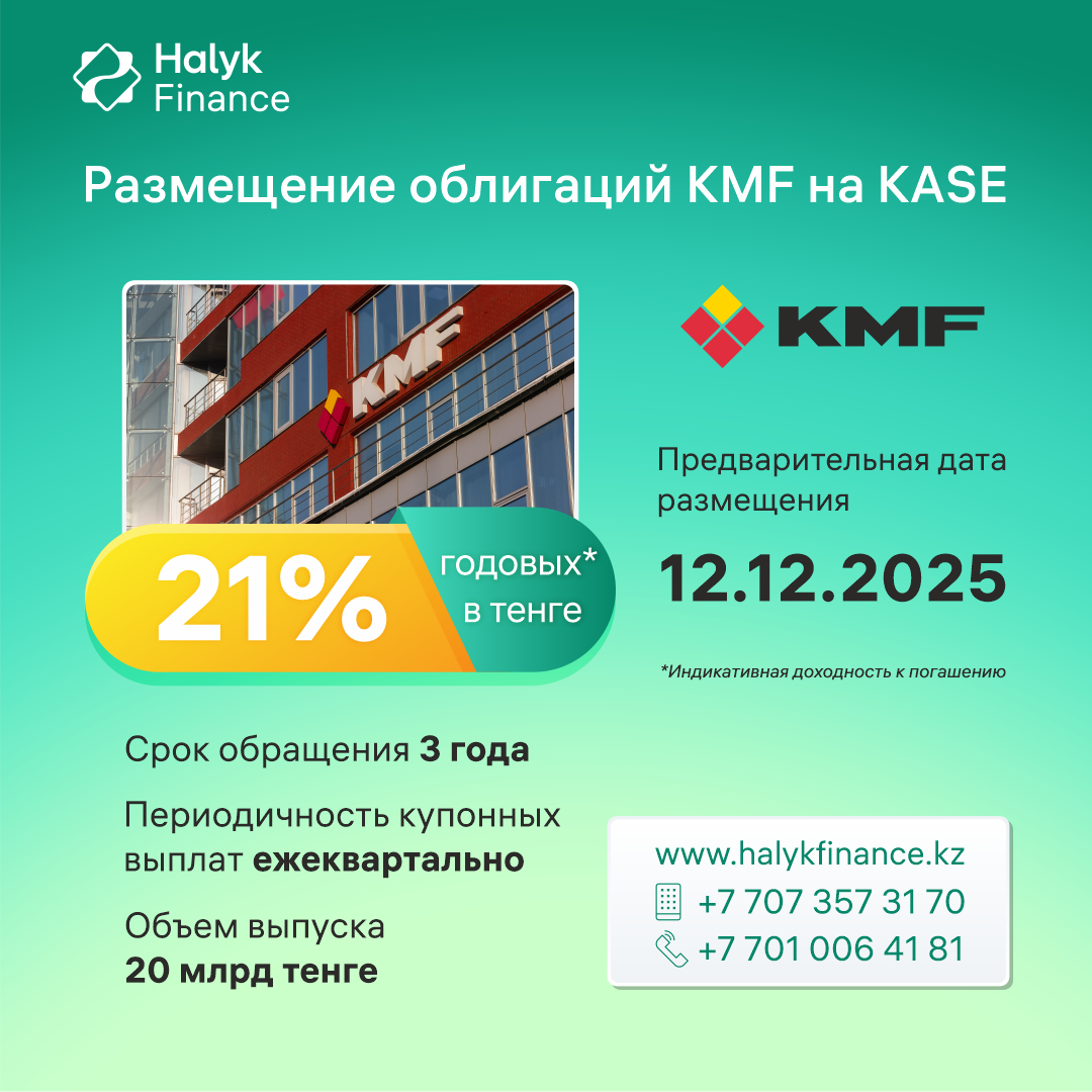 12 декабря 2025 года на KASE состоится размещение тенговых облигаций АО «KMF Банк». Ниже приводим основные параметры выпуска:
